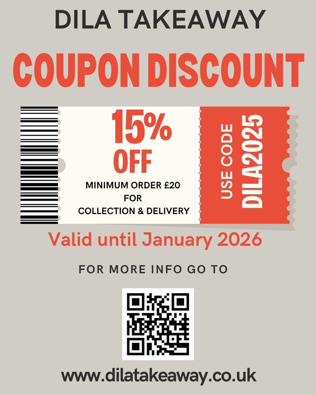 We are proud to present the finest chef in the culinary world. The management takes great care to ensure that our diners are happy with the food. We pride ourselves on our customer service and quality of food. DILA TAKEAWAY uses only the very best ingredients to prepare your meal. In addition to the all time favourite dishes, we also offer our own specialities creating unique meals for you to enjoy. DILA TAKEAWAY is an Authentic Cuisine in KETTERING, tempted by an unrivaled range of Authentic & Imaginative traditional and fusion dishes. Our approach to healthy cooking is that we try to minimize additives in our dishes. So enjoy your meal & have a memorable experience!!